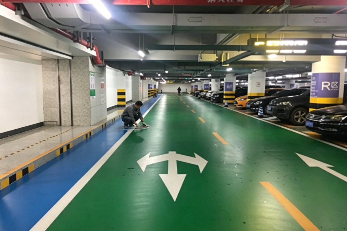 红河弥勒江边乡停车场车库聚氨酯地坪施工厂家